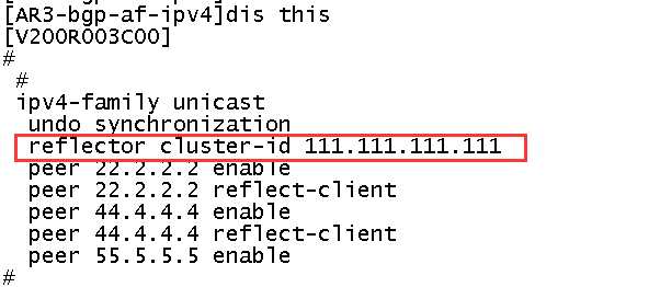 [AR3-bgp-af-ipv4] reflector cluster-id 111.111.111.111
