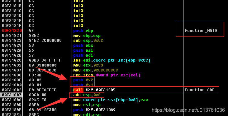 Fastcall:与stdcall方式基本类似,但该方式通常是使用寄存器(非栈内存)去传递那些需要传递给函数的部分参数(前两个)。若某函数有4个参数,则前2个参数分别使用ECX、EDX寄存器传递。使用过程中注意ECX和EDX已经包含参数了。Fastcall的目的是为了加大执行速度用的。