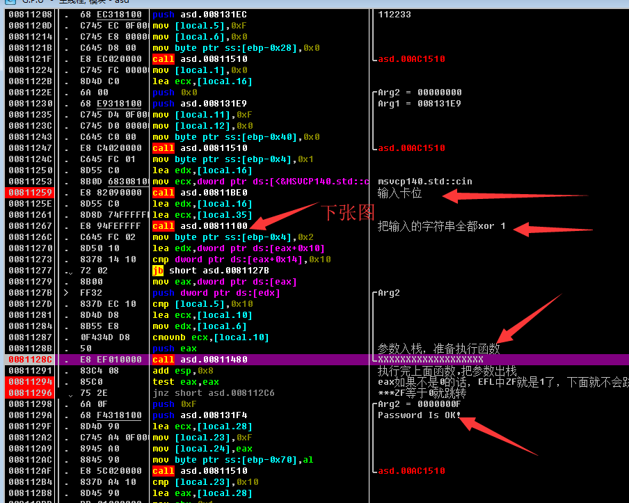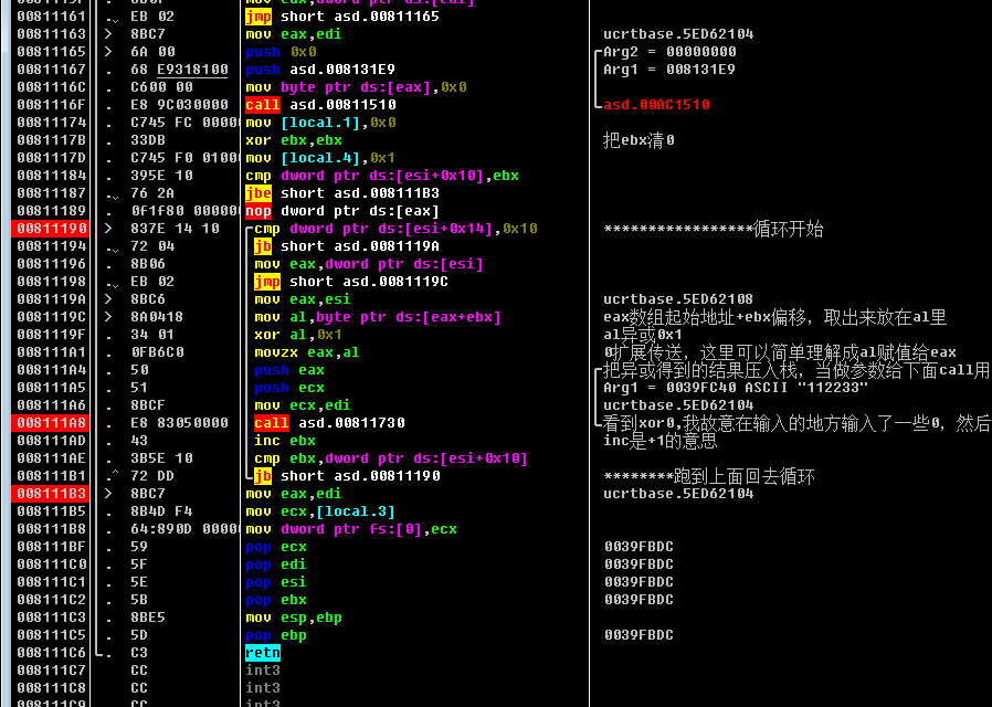 异或0x1的那个函数call asd.00811100是这个(分析都写在注释里了):