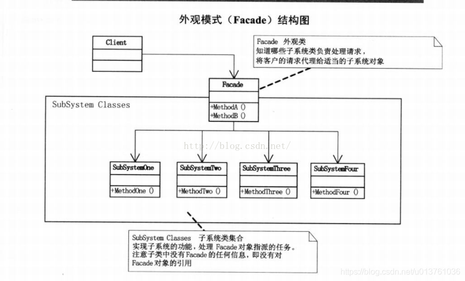 为了系统中的一组接口提供一个一致的界面,此模式定义了一个高层接口,这个接口使得这一子系统更加容易使用。