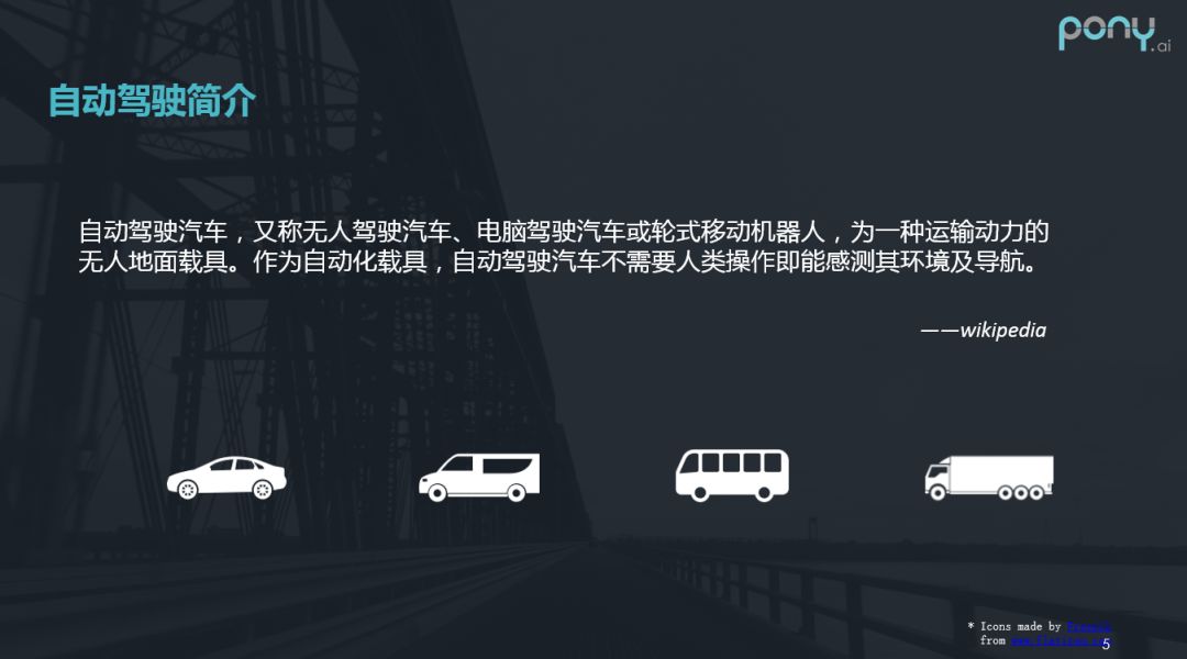 这是一段来自维基百科的关于自动驾驶的定义:自动驾驶汽车,又称无人驾驶汽车、电脑驾驶汽车或轮式移动机器人,为一种运输动力的无人地面载具。作为自动化载具,自动驾驶汽车不需要人类操作即能感测其环境及导航。