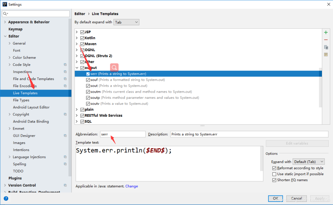 方法二:设置模板 File–>Setting–>