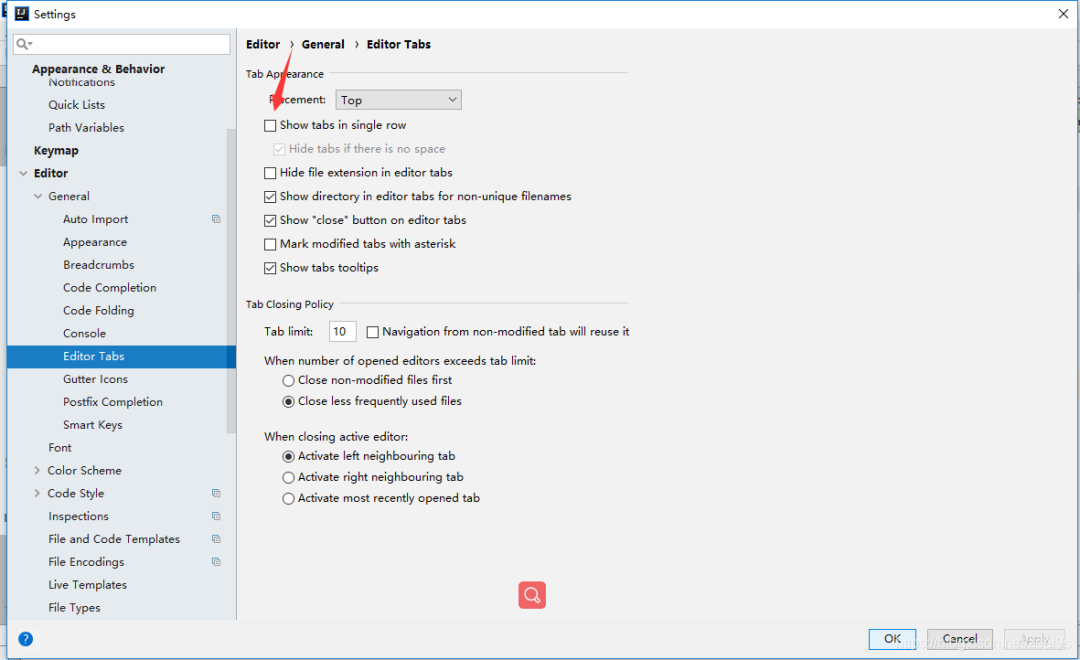(2)设置方法File–>settings–>Editor–>General -->Editor Tabs–>去掉√