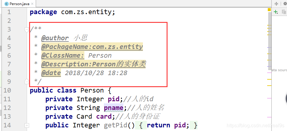 配置类文档注释信息和方法注释模版