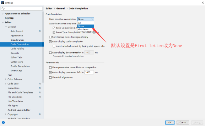 (2)设置方法File–>settings–>Editor–>General -->Code Completion