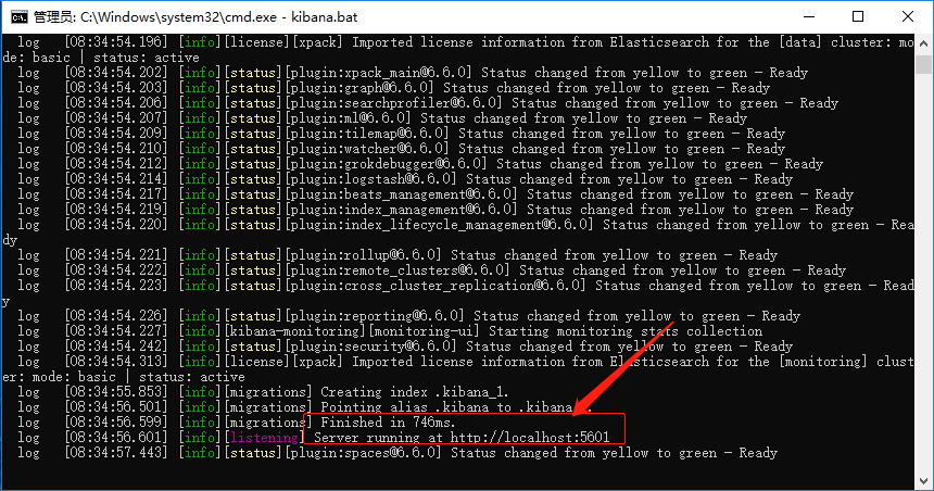 默认情况下,Kibana 在前台启动,输出 log 到 STDOUT ,可以通过 Ctrl-C 停止 Kibana。