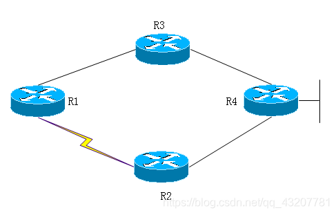 根据以上路由表显示,下一跳为R3过来的关于路由4.4.4.4的度量值为158720.
