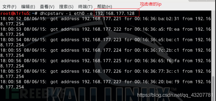 Kali默认没有安装dhcpstarv,也可以用yersinia代替