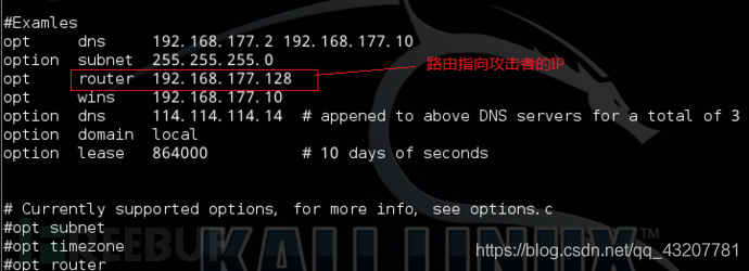 然后启动另一台Kali机当作目标靶机,由于正常的DHCP服务器已经没有可分配的IP资源,新的内网主机就会使用攻击者DHCP服务器分配的IP