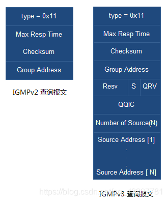 对于通用查询报文,igmpv2报文长度为8字节,igmpv3长度为12字节。