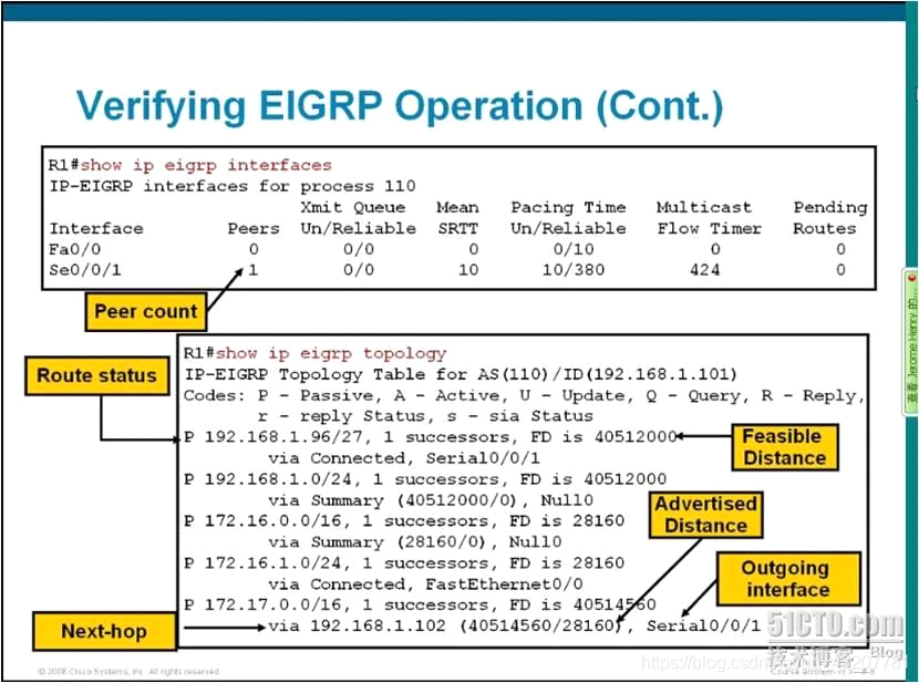 1、组播和单播:EIGRP组播地址是224.0.0.10 ,使用组播和单薄取代广播