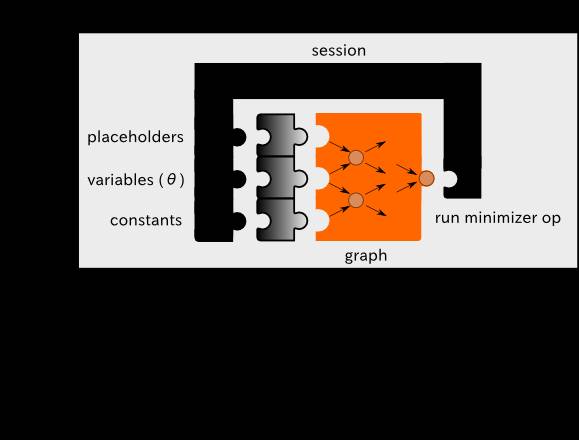 这时,我们的问题就转化为最小化成本函数值,如图 6 所示,TensorFlow 试图以有效的方式更新参数,并最终达到最佳的可能值。每个更新所有参数的步骤称为 epoch。