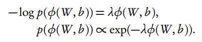 正则项 λφ(W, b) 可以从概率上解释为参数的负对数先验分布: