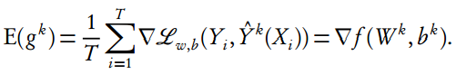 当 |Ek | > 1 时,该算法被称为 batch SGD 或就是 SGD。一般而言,子集 E 是通过在 {1,...,T } 中循环选取的连续元素,Ek+1 = [Ek mod T ]+1。方向 gk 是使用一个链式规则(即反向传播)计算的,提供了 ∇f (W k· , b k ) 的一个无偏置的估计量。具体来说,我们有: