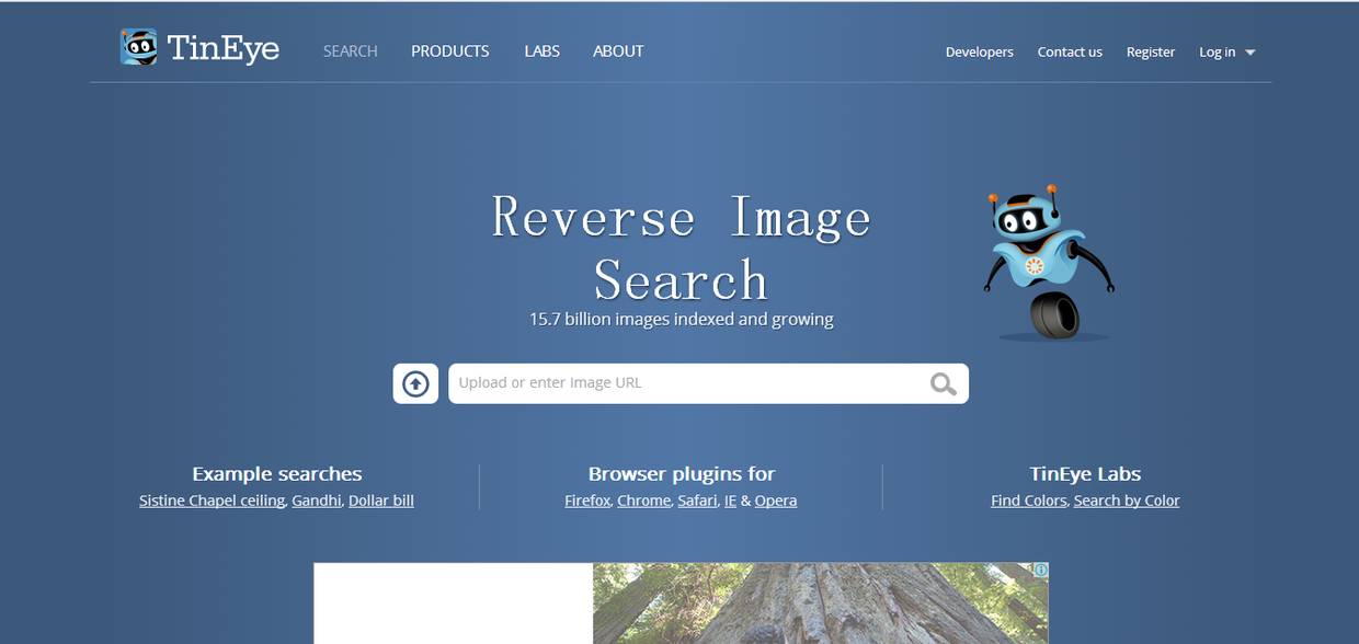 tineye是一款优秀的反向图像搜索引擎。