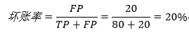 “坏账率”的意思是,判断为好人的群体中,真正的坏人所占的比例。即: