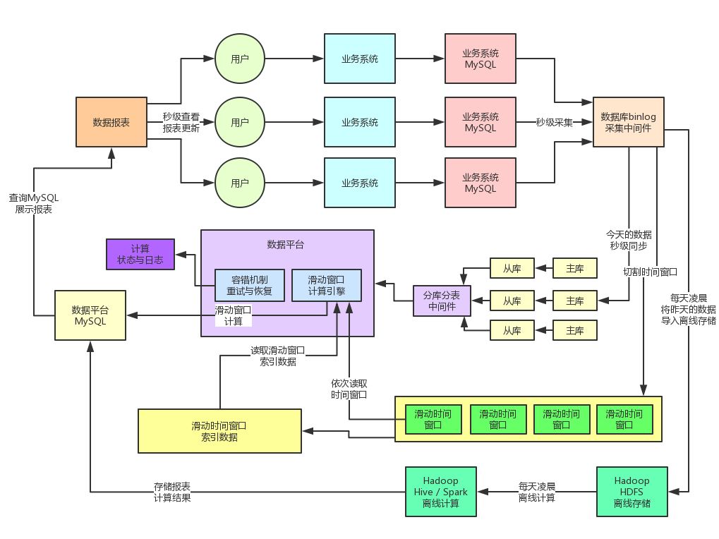 举个例子:比如一天就几千万条数据放在MySQL里,那么单表数据量被维持在了千万的级别上,此时如果对SQL对应索引以及优化到极致之后,勉强还是可以在几十秒内完成所有报表的计算。