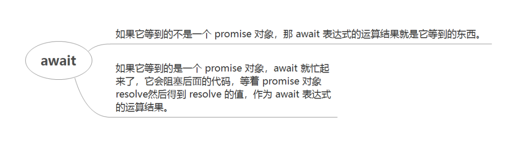 await 就是异步等待,它等待的是一个Promise,async函数调用不会造成代码的阻塞,但是await会引起async函数内部代码的阻塞。