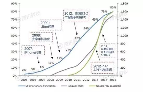 美国智能手机生态系统的发展轨迹图