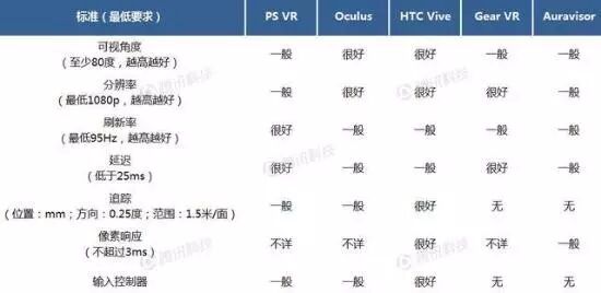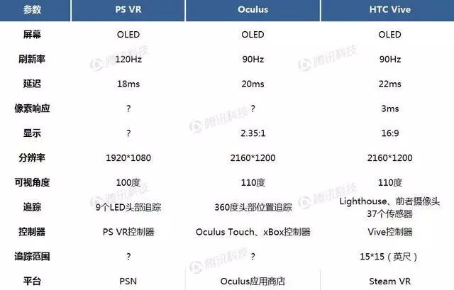 如前文所述,Oculus首席科学家迈克尔•亚伯拉什曾表示,为提供“完全在场”体验,VR头盔应该拥有接近95Hz的刷新率、3ms的像素响应、110度可视角度,以及最低1Kx1K的分辨率。事实上,三款VR系统的硬件规范十分接近,均能提供“完全在场”体验。