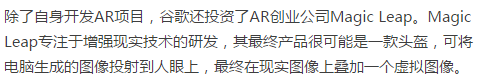 此外,谷歌还瞄准了增强现实(AR)市场,去年携手联想发布了Project Tango项目,其首款智能手机参考将于今年年中发布。