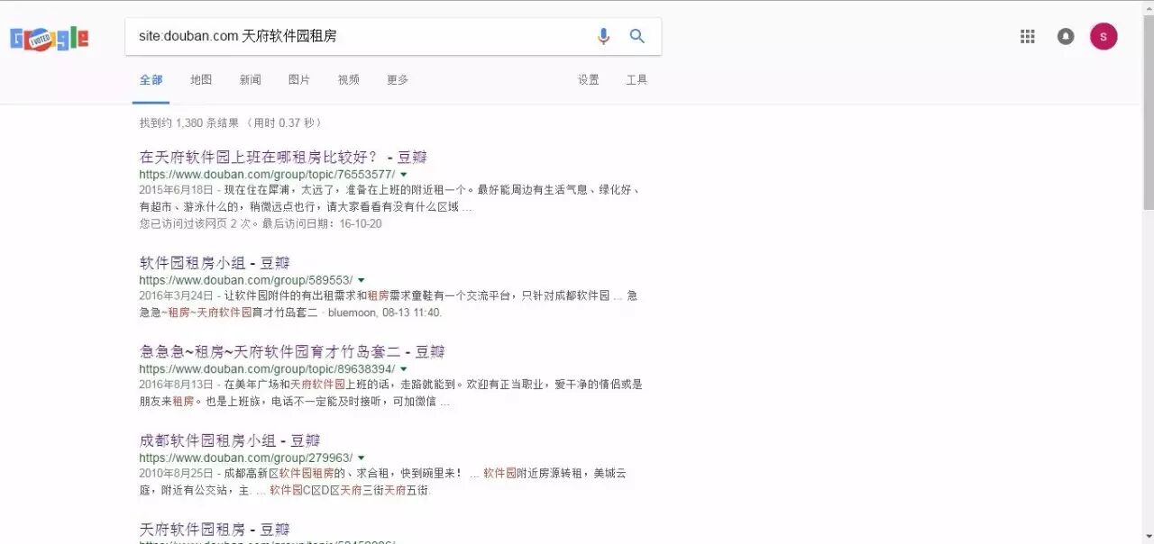 再举个比较贴近生活的例子,大家平时工作在外,租房子肯定是一件非常困难的事情,黑中介非常的多,使用 Google 搜索房源,能够很快的帮助你找到房子,如成都天府软件园租房
