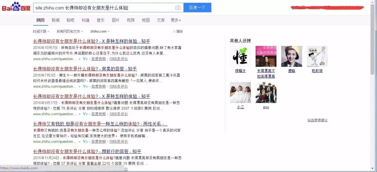 这个也是跟谷歌一样,比如搜知乎的内容,site:zhihu.com 长得帅却没有女朋友是什么体验