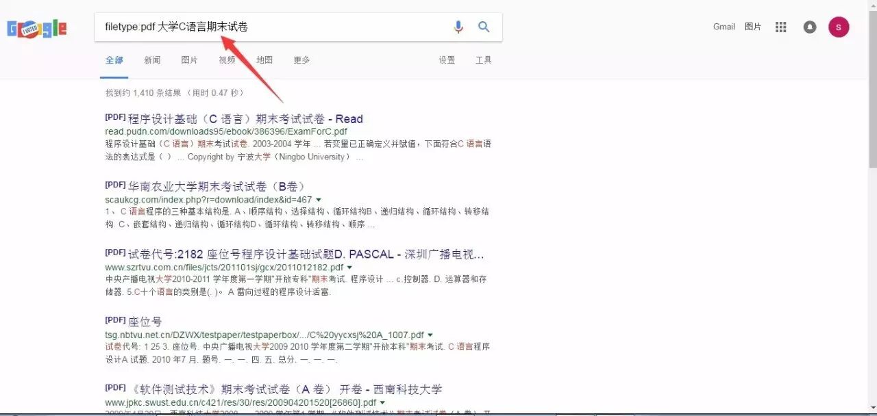 如果要搜索自己的学校卷子,可以参考下第一条双引号特定搜索,如果 pdf 格式的没有,可以换个关键词,考虑一下其他的文档格式,如 doc 等