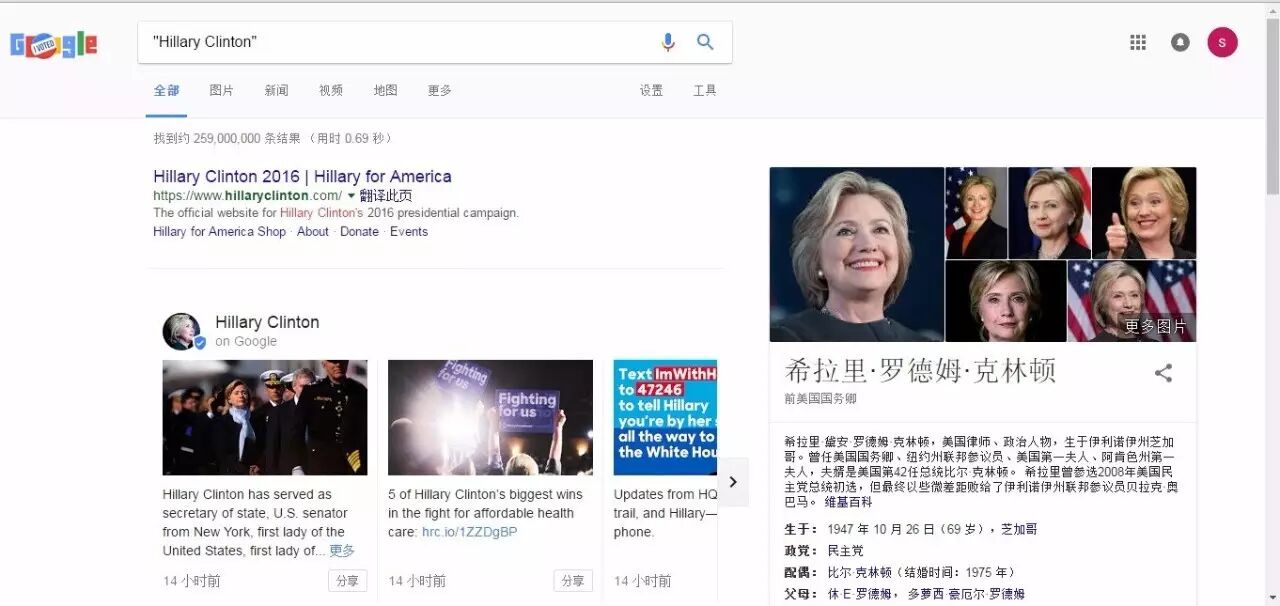 这个还是同谷歌的搜索技巧,我们搜索:Hillary Clinton