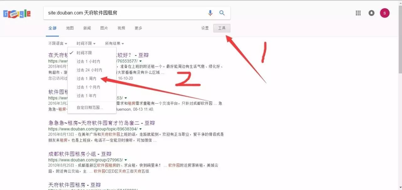 光这样,还远远不够的,毕竟有些房子是发布了好久,那有没有办法搜索最近几天的租房信息呢,有的,见图