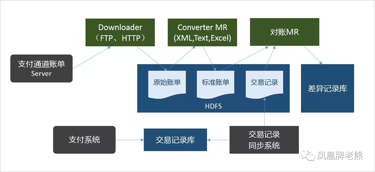 为了加快处理速度,我们使用hdfs作为文件系统,有利于后续的对账的处理。
