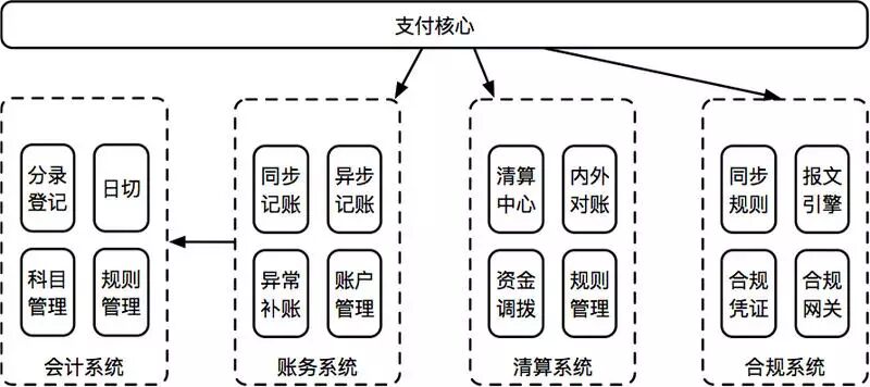 账务系统:由支付核心驱动,记录管理账户信息,直接反应用户的账户余额和资金变更明细。