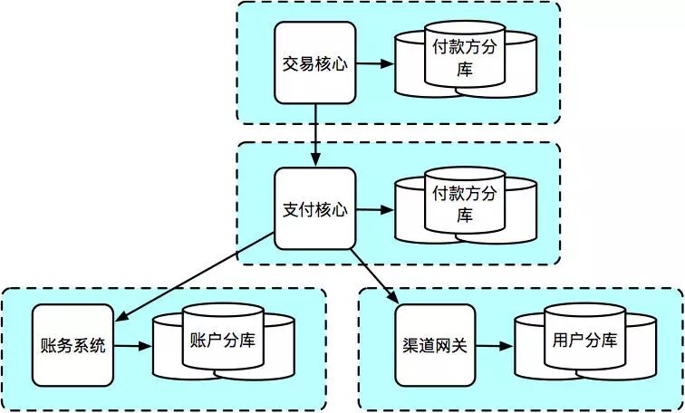 基于业务,拆分为面向支付业务,面向资金核算体系