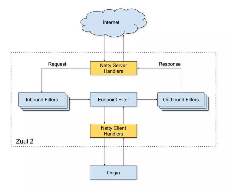 我们在所有外部流量进入 Netflix 云服务的入口处都会使用 Zuul,并且也开始使用它来路由内部流量。Zuul用作外部流量网关和内部流量网关时,Zuul的核心架构是一样的,只是用作内部流量网关时实现相应功能的过滤器要少很多。
