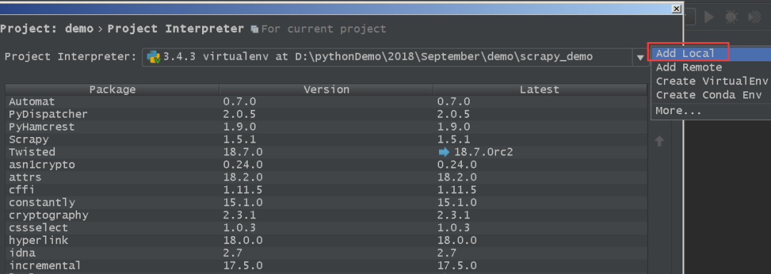 找到该项目对应的虚拟环境Python解释器,进行添加即可,如下图所示。
