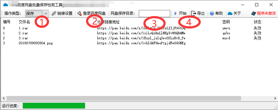 如果是需要批量保存网盘的分享链接,操作类型直接选择“保存”,然后登录百度网盘获取Cookie,设置好保存的目录,点击开始即可。