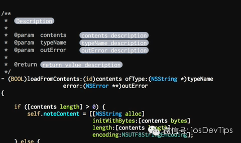 VVDocumenter(https://github.com/onevcat/VVDocumenter-Xcode)是一个自动生成代码注释的工具,可以方便地将函数的参数名和返回值提取出来,这样结合上一节介绍的appledoc命令,就可以方便地将帮助文档输出。