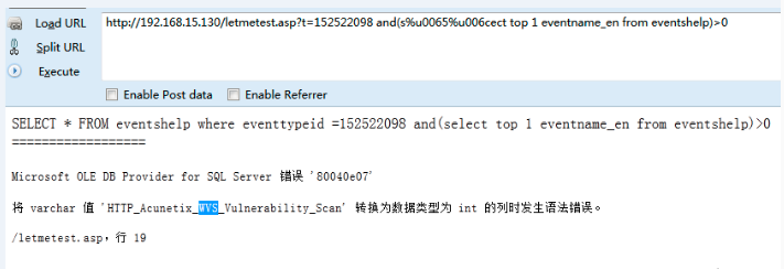 在asp+iis的环境中存在一个特性,就是特殊符号%,在该环境下当们我输入s%elect的时候,在WAF层可能解析出来的结果就是s%elect,但是在iis+asp的环境的时候,解析出来的结果为select。