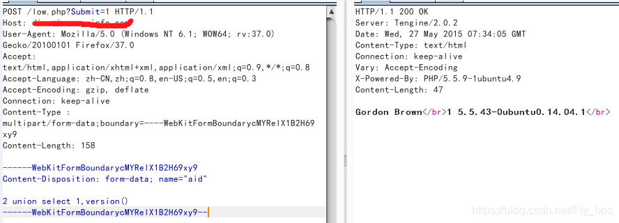 其次我们以form-data的方式提交,发现爆出了数据库的版本。