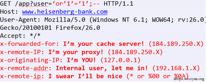 文章内容是通过修改http的header来bypass waf,这里我们截取文章中部分内容: