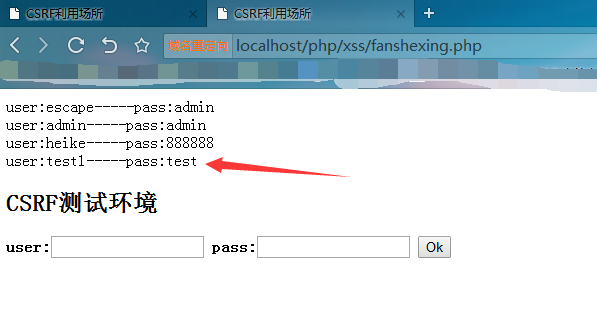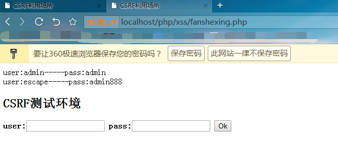 ok,假设我现在是一枚网站管理员 现在localhost是我网站 localhost/php/xss/fanshexing.php 是我后台 现在我的同伴他说想帮我管理我的后台 我就把他创建了一个用户 用户名为(escape) 密码为(admin888)