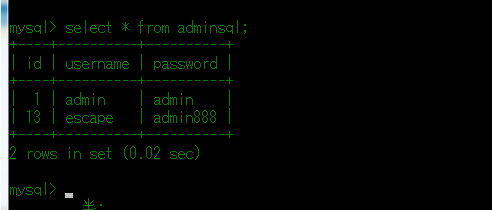 [size=1em]INSERT INTO `adminsql` (`id`, `username`, `password`) VALUES