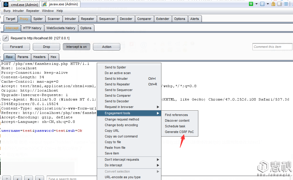 OK 接受到了 右击burpsuite界面 Engagement tooles 里面的 Generrate CSRFPoC