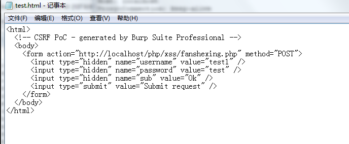 如果想修改账号 就吧 <input type="hidden" name="username" value="test" /> value="账号在这里 可以随便修改其他的 这里我就修改为test1"