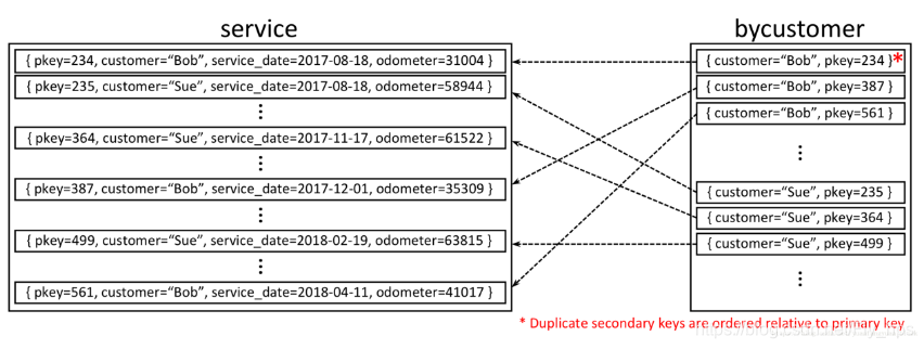 我们还想方便的查询每个顾客的维修记录,所以需要一个以顾客账户名为键(Key)的索引。