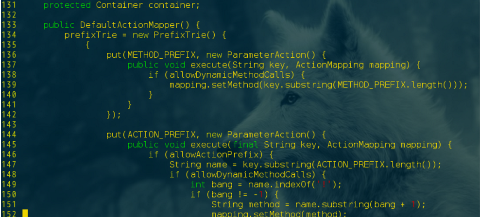 method后面跟的方法名会被struts2进行解析,代码位于DefaultActionMapper.java中。