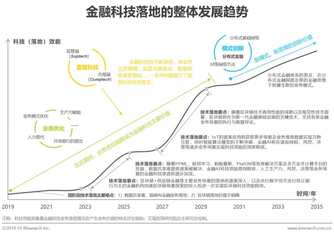 整体落地趋势来看:短期以业务赋能为主,长期以模式创新为主,且随着金融科技业务渗透的逐渐加深,监管难度增加,监管科技将逐渐落地。