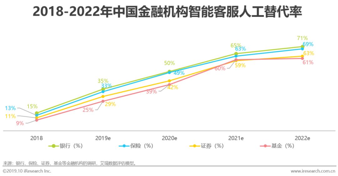 目前,以实现Step1、Step2为主,智能客服、RPA/IPA等技术将逐渐替代传统金融业务中的流程化、重复性的人力工作。相比之下,科技化业务执行可提供7×24小时同效服务,极大地降低错误率。而技术替代人力需要一个循序渐进的过程,以智能客服为例:随着NLP、知识图谱等技术的突破,智能客服将逐渐适应更加复杂的业务场景,进而提升人工替代率。