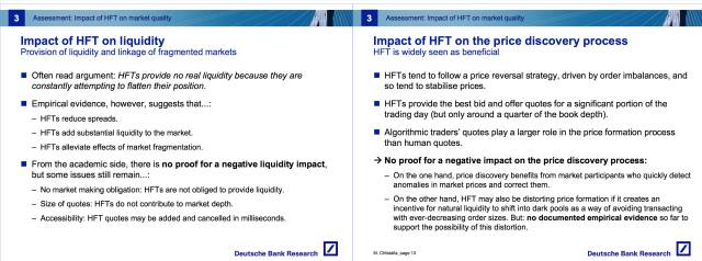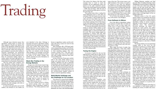 高频交易是一种更频繁地用于快速启动金融交易的方法。这种由高速发送订单组成的自动交易形式在美国过去十年中经历了强劲的增长。Tabb Group的数据显示,高频交易目前约占美国贸易额的55%,欧洲贸易额的近40%。