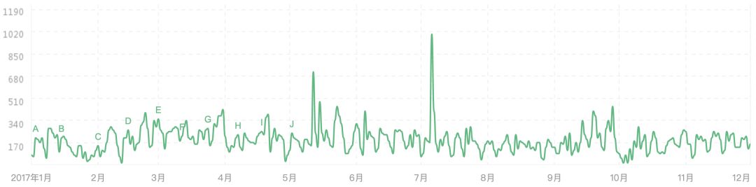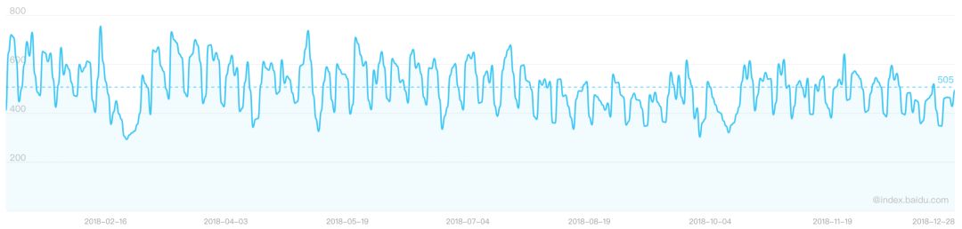2017年量化投资搜索指数平均值为613,2018年为505。原因上面也说了。大家看到没有,从y坐标轴的基数来看,就很能说明问题。